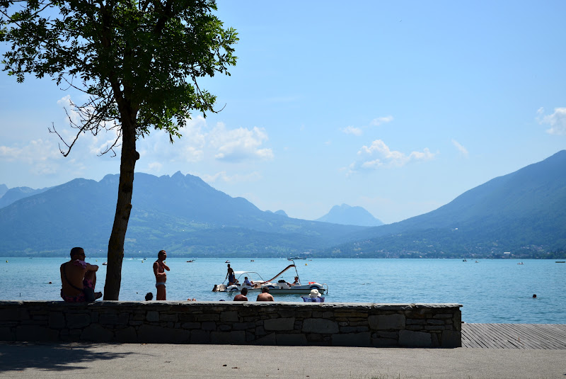 Annecy é quase na fronteira com a Suíça. Tem uma lago, com praia e tudo, e no centro histórico, canais. As casas aqui não são mais em enxaimel, passamos da influência germânica para o estilo alpino. Compondo a paisagem, as montanhas... A cidade é muito bonita e agradável, embora estivesse lotada no verão.